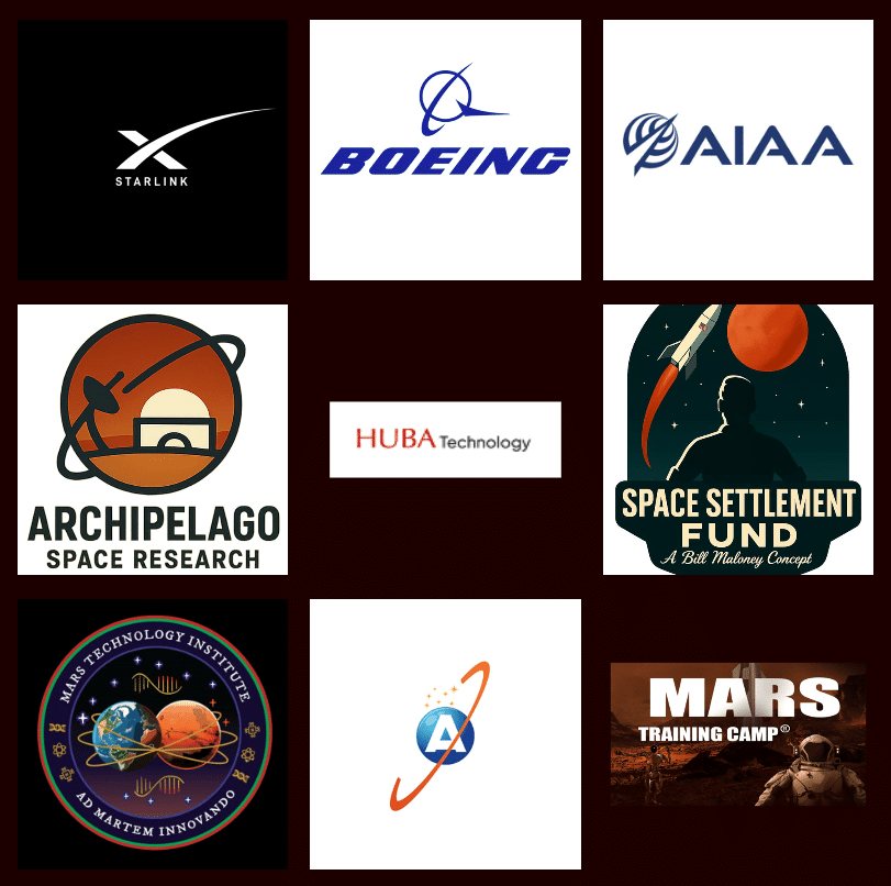The Mars Society extends its deepest gratitude to the sponsors of the 28th Annual International Mars Society Convention. Their generous support made it possible to bring together an exceptional community of experts, students, and space enthusiasts from around the world, both in-person and virtually — all united in advancing the cause of Mars exploration and human spaceflight.